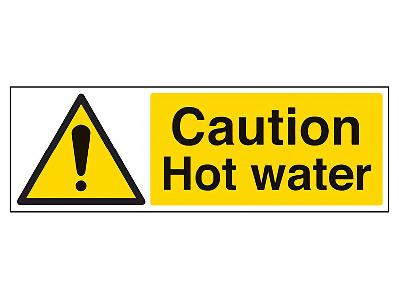 Hot Water Safety Essential: Protect staff and visitors from scalding hazards in kitchens, bathrooms and industrial wash areas with our high-impact warning sign.