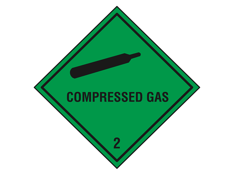 - Compressed gas hazard warning label with instantly recognisable gas canister icon