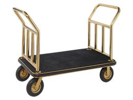 The grey carpeted base is designed to provide a soft surface that cushions delicate luggage during transport. This feature prevents scratches and dents, ensuring that guests' belongings arrive at their destination in perfect condition. Whether dealing with suitcases, handbags, or more fragile items, the carpeted base reduces the risk of damage, offering peace of mind to both staff and guests.